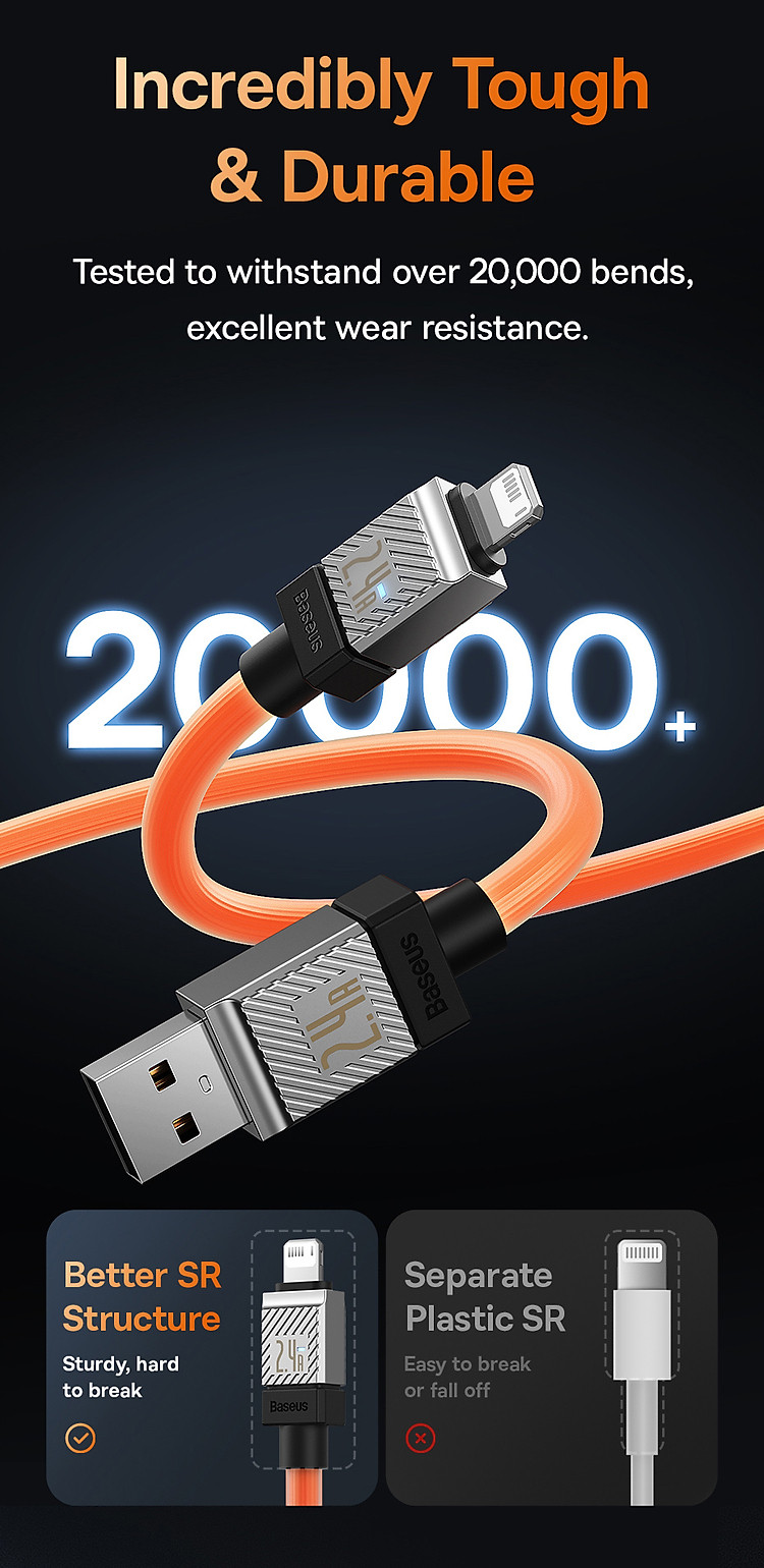 Cáp được thiết kế bằng vật liệu chất lượng cao, chống rối và chịu được sự cắn của động vật cũng như khả năng bảo vệ thiết bị của bạn khỏi quá tải điện áp. Với độ dài 1m và 2m, cáp sạc này đủ dài để bạn có thể sạc và sử dụng thiết bị của mình một cách thoải mái mà không bị hạn chế bởi khoảng cách.