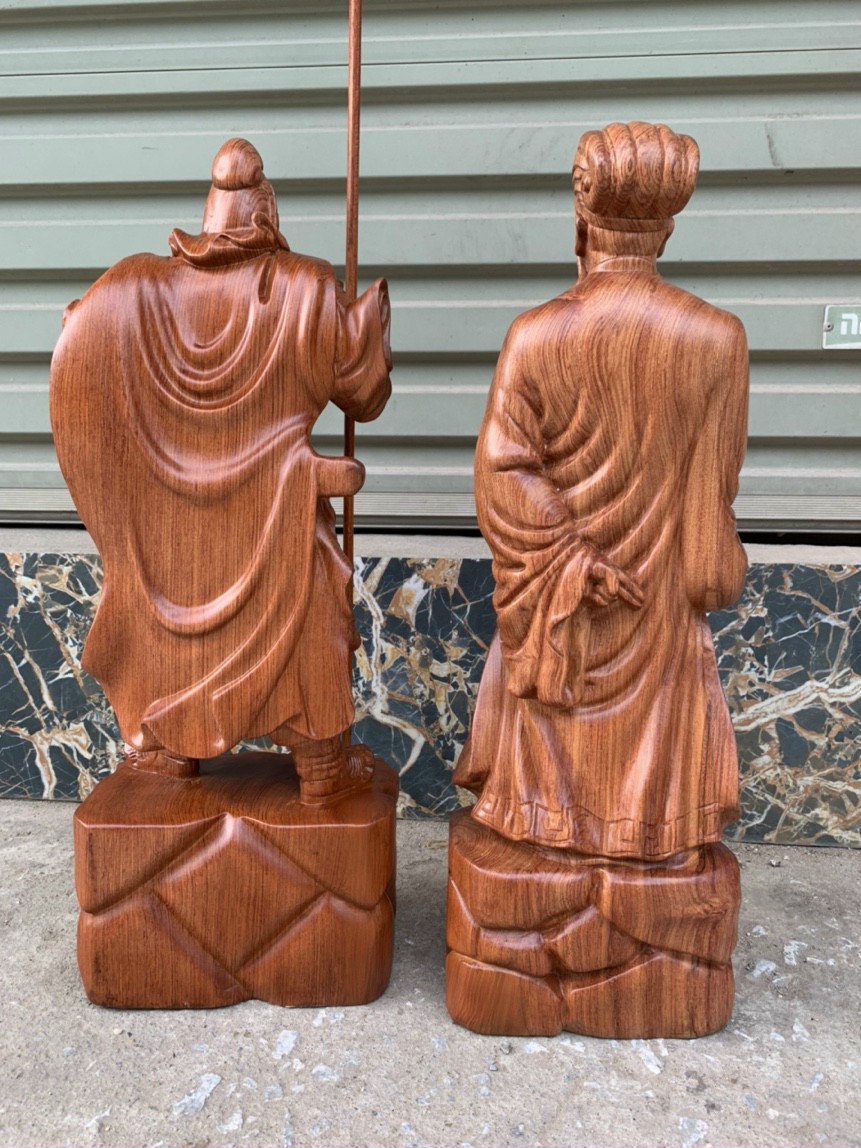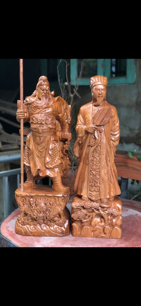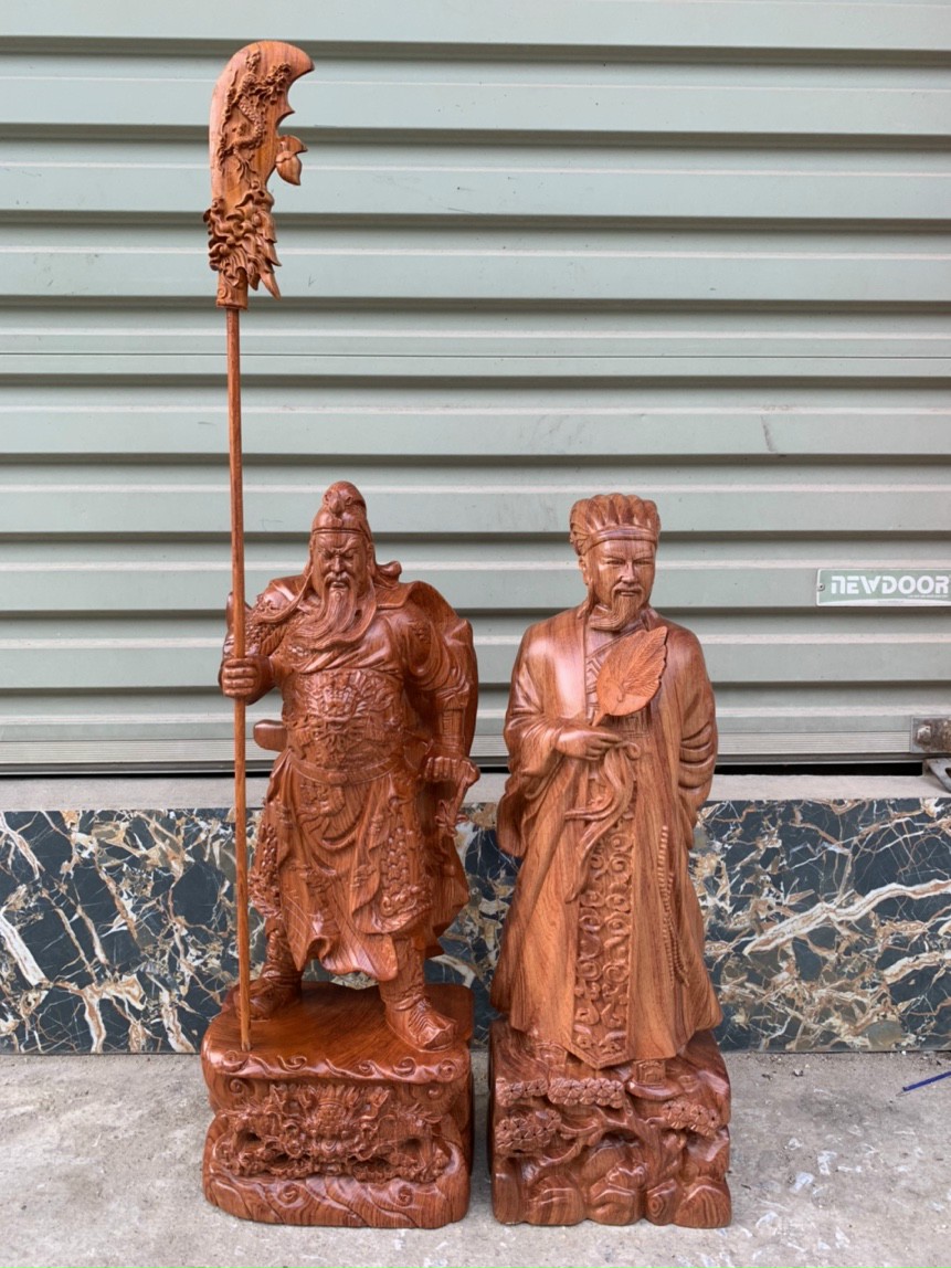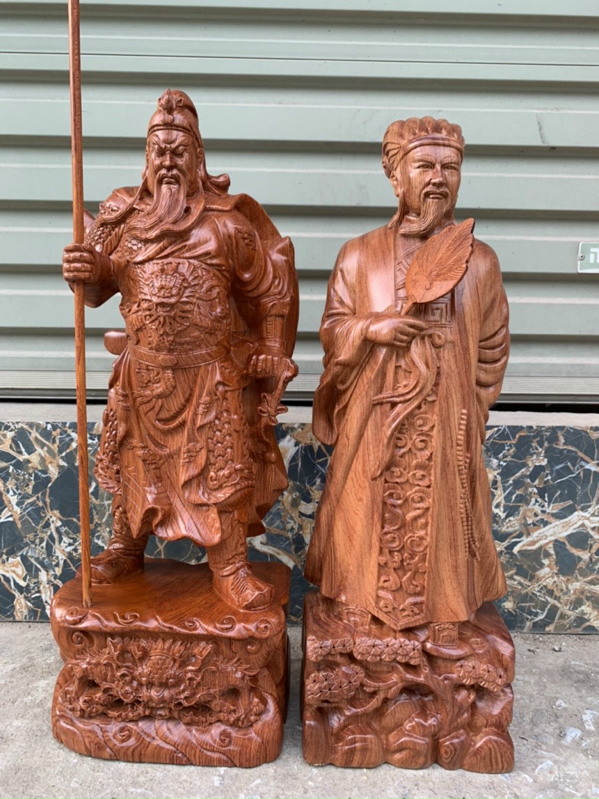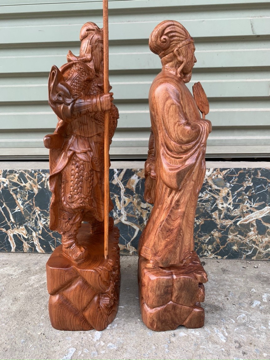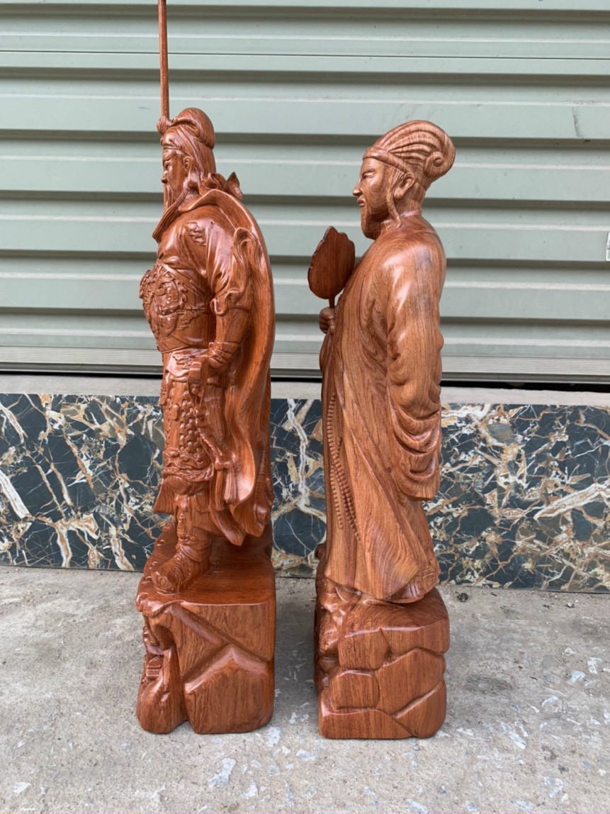 _Tượng quan công và gia cát lượng được làm bằng chất liệu gỗ hương đá tự nhiên 100%