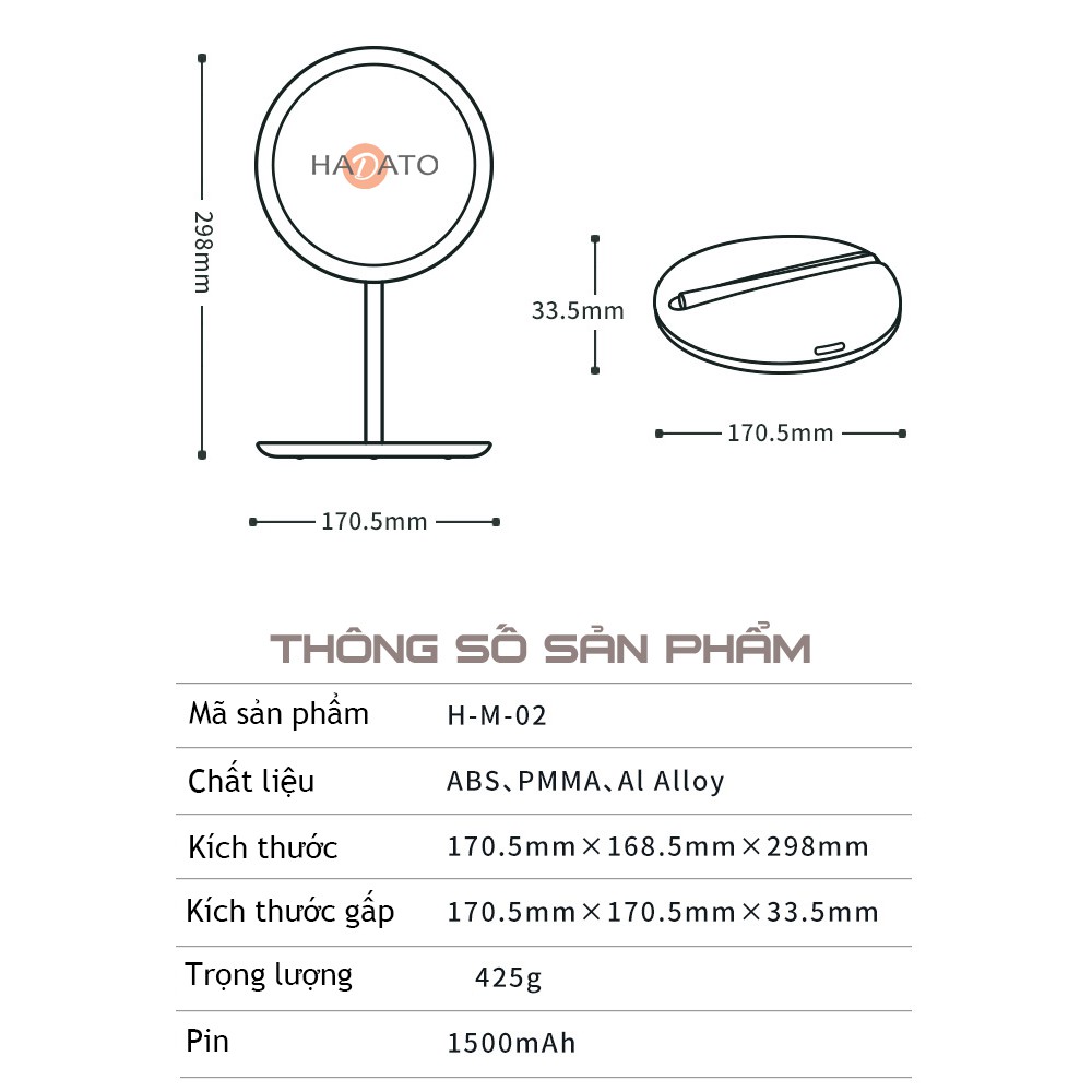 ======THÔNG SỐ KỸ THUẬT====== 👉 Kích thước: 170,5x168.x298 (mm). 👉 Màu sắc sản phẩm: Trắng, Hồng. 👉Thành phần đế: nhựa ABS. 👉 Cấu tạo kính: Gương Bạc. 👉 Dung lượng pin: 1500mAH 👉 Công suất: 3W. 👉 Độ sáng: 5200k như ánh sáng tự nhiên. 👉 Điện áp đầu vào USB: 5V-1A. 👉 Góc xoay: 90 độ. 👉 Trọng lượng: 500gr.