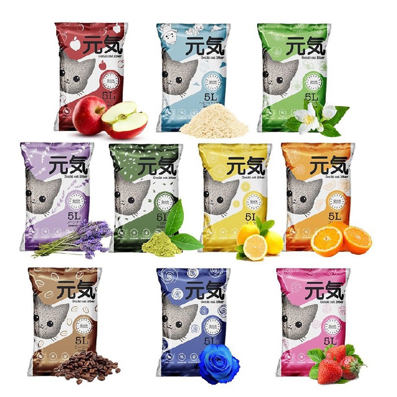 Chăm Sóc Thú Cưng > Vệ sinh cho thú cưng > Khay & Bồn vệ sinh cho mèo || Cát GENKI Nhật Bản - 5L Cát Vệ Sinh Cho Mèo - 10 Hương Thơm Dễ Lựa Chọn Cho Bé