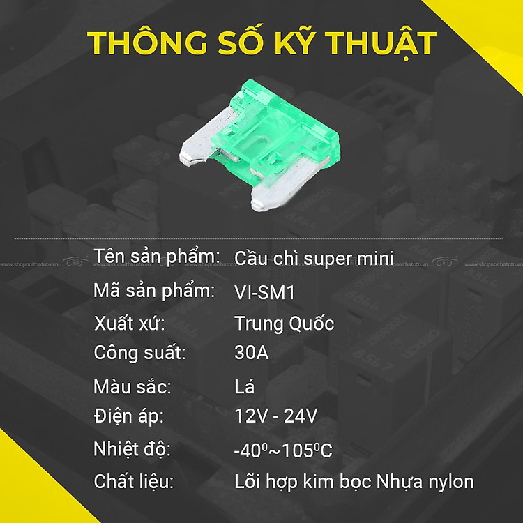 Cầu chì super mini VI-SM1 30A được làm bằng hợp kim kẽm và nhựa theo tiêu chuẩn và điện áp định mức, sử dụng phù hợp cho nhiều vị trí như ô tô, xe máy, nhà ở, các công trình hay ứng dụng sản xuất.