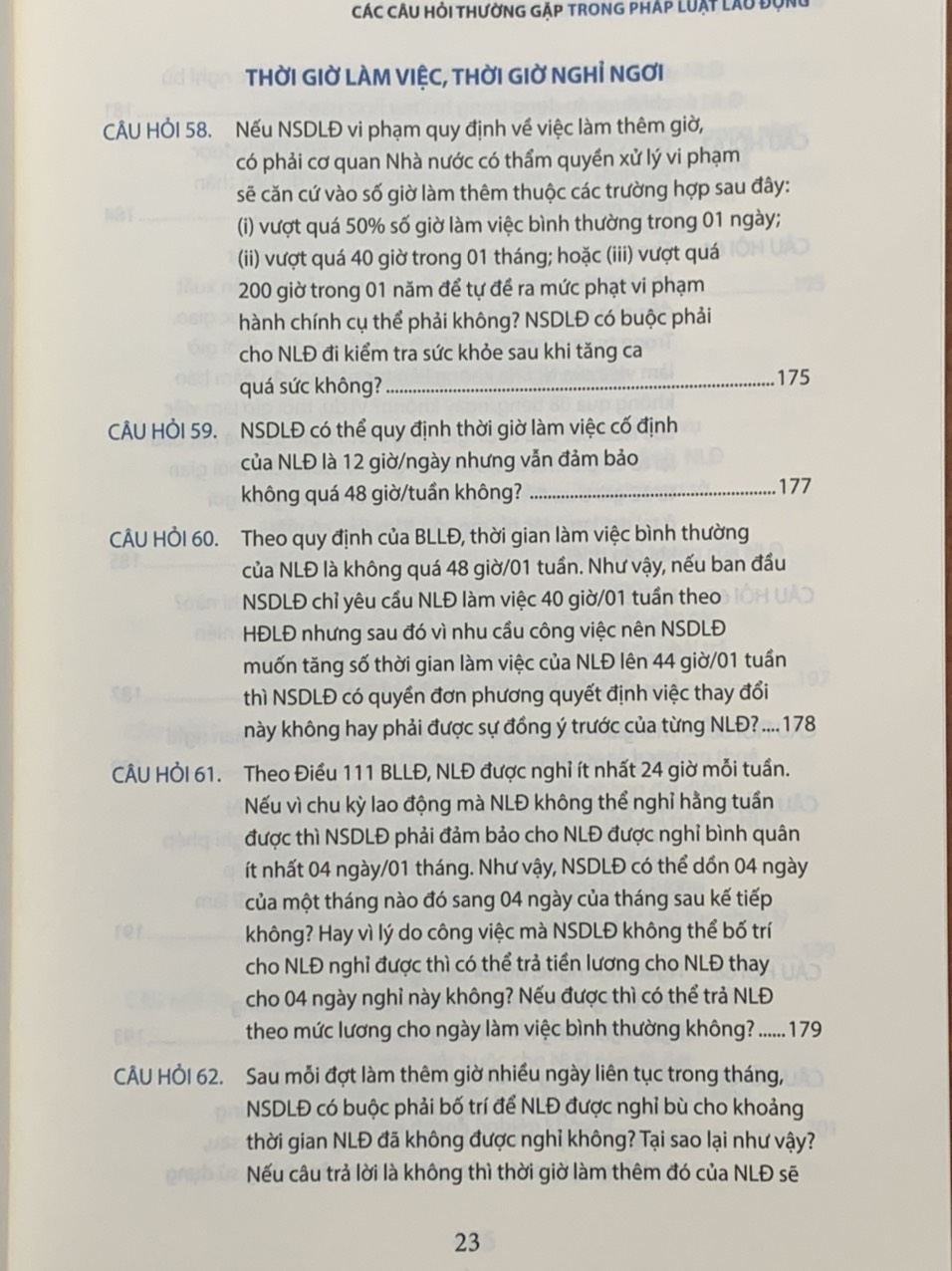 Các vấn đề liên quan đến: THỜI GIỜ LÀM VIỆC VÀ THỜI GIAN NGHỈ NGƠI; gồm 6 câu hỏi và giải đáp