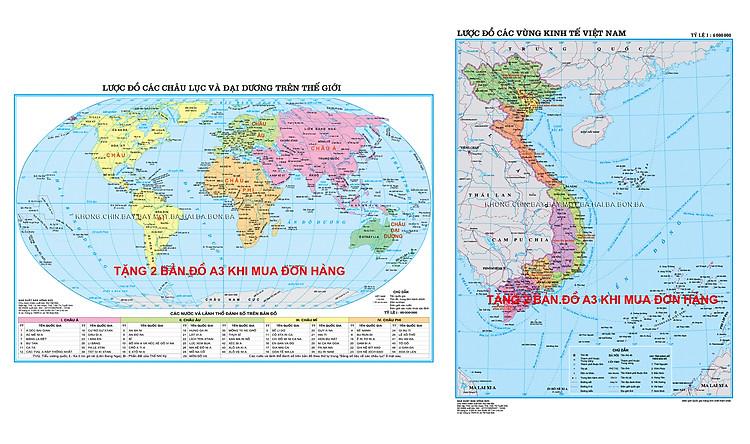 Quý khách được tặng 2 tờ BĐ Việt Nam A3 và Thế giới A3 khi mua 1 đơn hàng