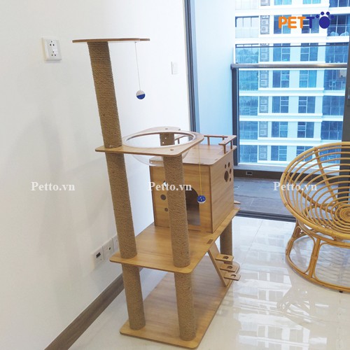 Đặc Điểm Sản Phẩm Nhà Cây Cho Mèo Có Lồng Kính Chất Liệu Nhà cây cho mèo có lồng kính được sử dụng chất liệu Plywood có độ bền cao kết hợp cùng dây thừng sisal tự nhiên, mang đến cho mèo con của bạn không gian cào gãi rộng rãi, trong khi các chỗ đậu và căn hộ cho thú cưng của bạn một không gian an toàn để thư giãn. Thiết Kế Với cấu trúc 4 tầng, cây mèo này có thể chứa nhiều mèo một cách hoàn hảo. Thiết Kế có cầu thang đi lên đến 1 căn hộ và đilên sân thượng mèo thể nằm ở lồng kính ngủ nghỉ. Và mèo mèo có thể thỏa mái chơi đùa mà không sợ bị bất kì 1 điều đáng tiếc nào sảy ra, bởi tất cả các trụ điều được bao quay bởi lớp dây thừng sisal mang đến một cấu trúc vui chơi mềm mại nhưng an toàn cho mèo của bạn Với nhà cây này, thú cưng của bạn có thể ẩn náu hoặc thư giãn sau một buổi vui chơi mệt mỏi. *** THÔNG SỐ KỸ THUẬT Kích thước: 75 * 40 * 145cm Chất liệu: Gỗ Mdf phủ 2 mặt chống ẩm Phù hợp với nhà có nhiều bé mèo. Ưu Điểm Sản Phẩm Trụ cào móng cho mèo chắc chắn, bền. Lồng kính sang trọng sang trọng cho mèo ngủ Bốn trụ sisal chắc chắn. Tính thẩm mỹ cao, phù hợp với không gian hiện đại. Thiết kế gọn gàng, chắc chắn, có thể đặt ở bất kì vị trí nào trong nhà. Dễ dàng vệ sinh và vận chuyển. Giá cả phù hợp với mọi đối tượng. Cam Kết Chất Lượng