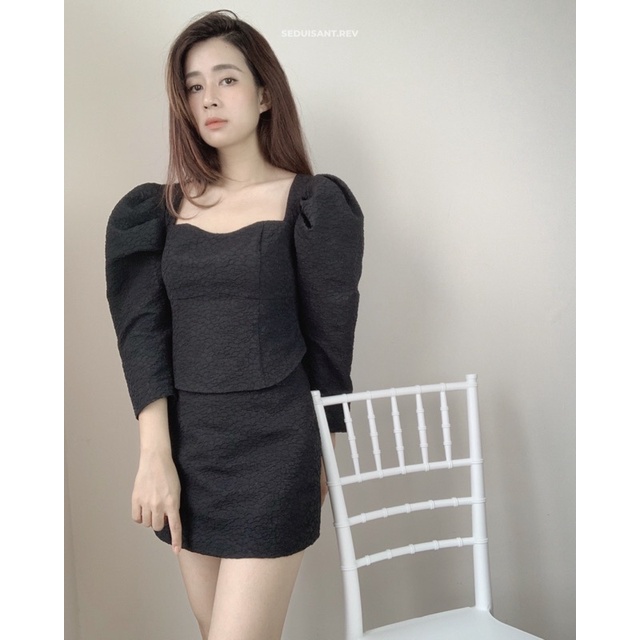 Giới thiệu Ceicei Top - áo tay phồng gấm hoa đen cao cấp SEDUISANT