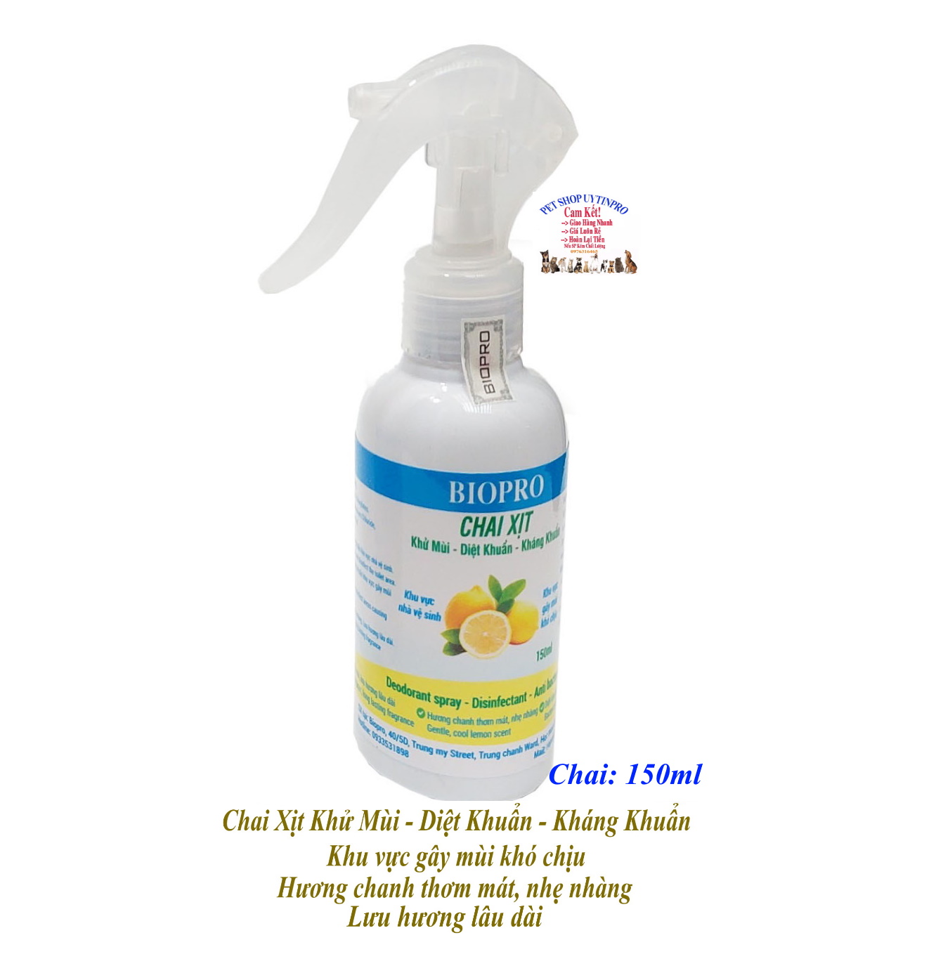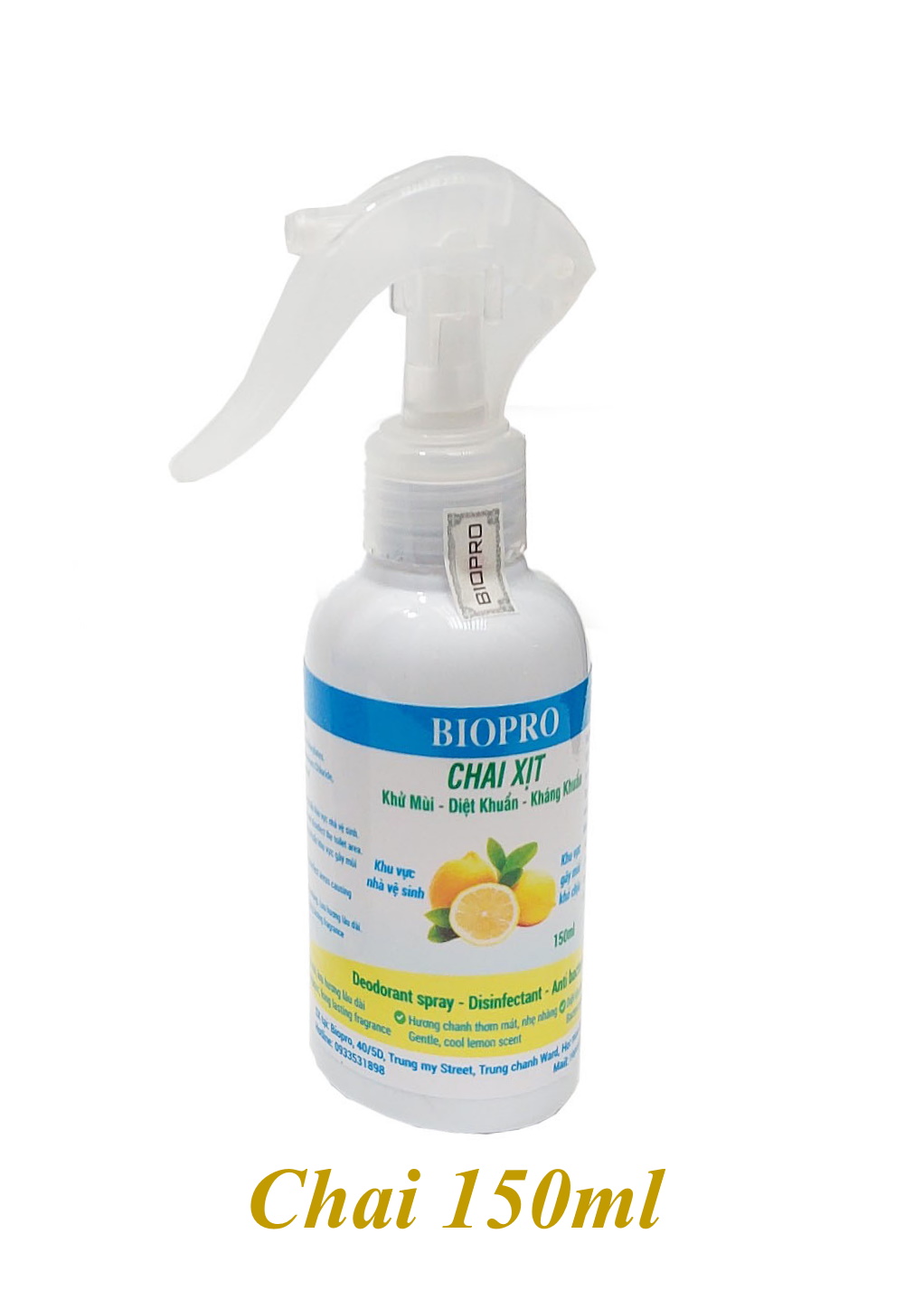 Chai xịt 150ml Biopro khử mùi diệt khuẩn kháng khuẩn Khu vực gây mùi khó chịu Khu vực nhà vệ sinh Hương chanh thơm mát