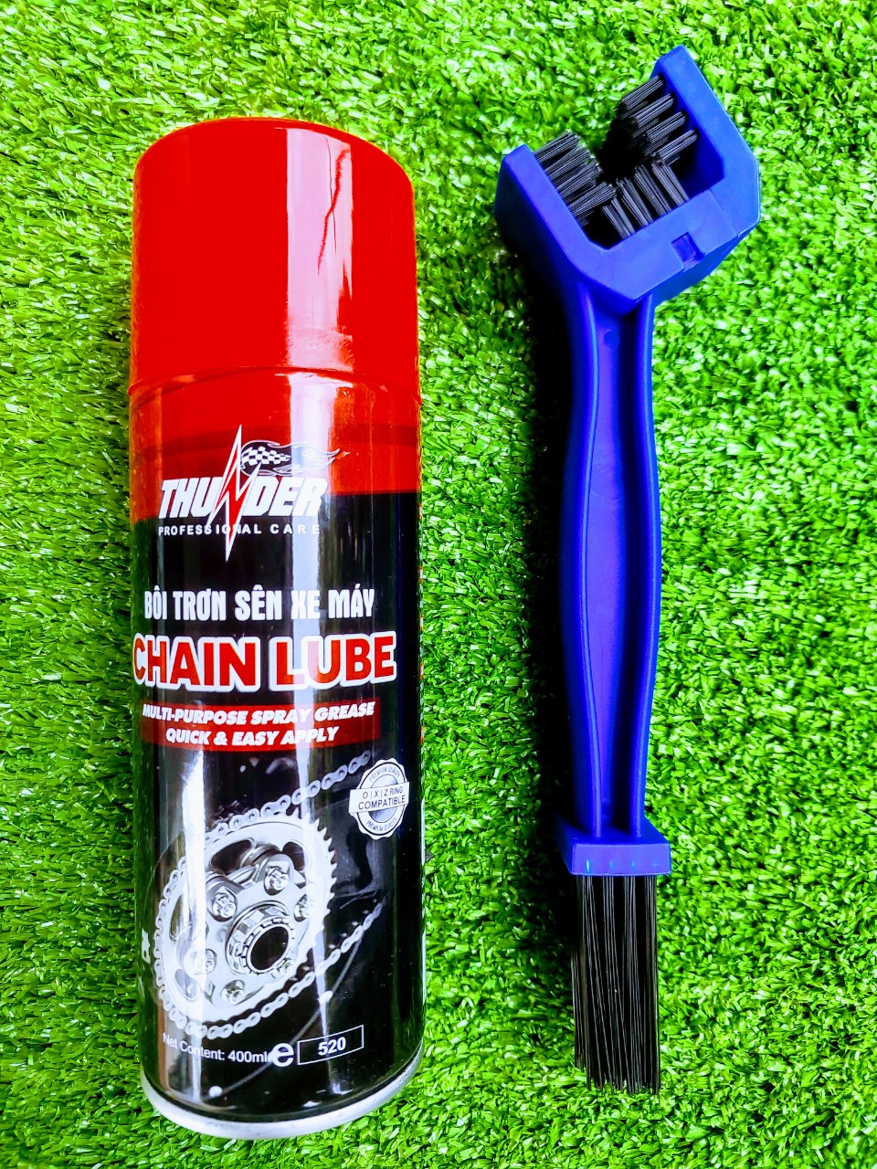 Giới thiệu sản phẩm Bộ sản phẩm bôi trơn dưỡng sên Thunder Chain Lube 400ml và bàn chải sên chuyên nghiệp