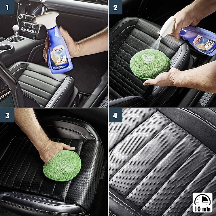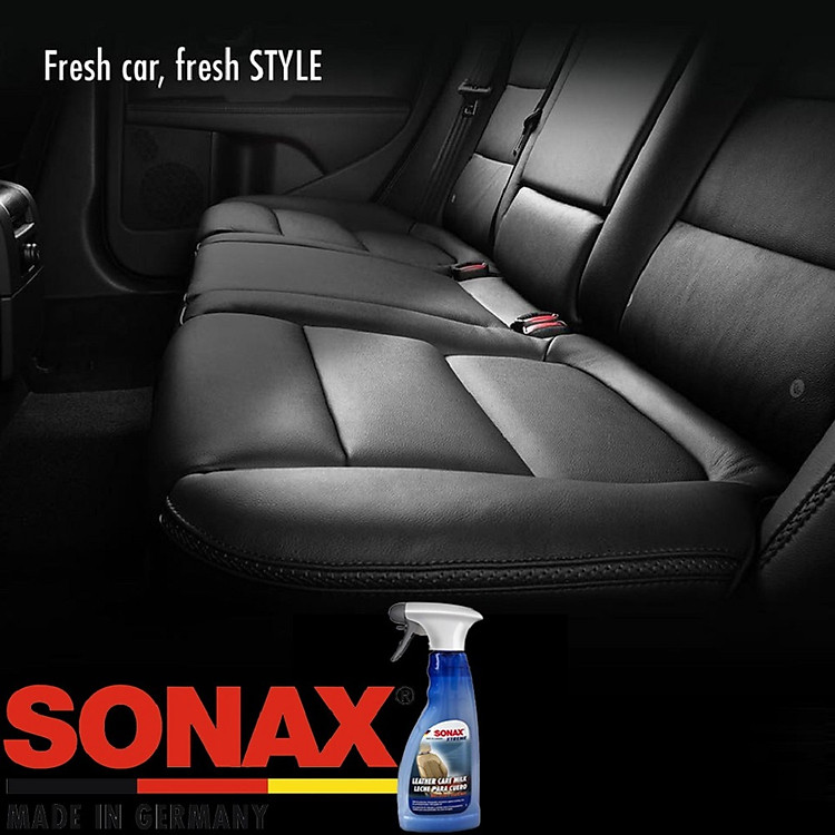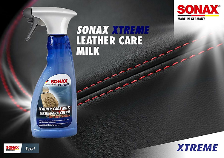 Chai xịt dưỡng da ô tô cao cấp Leather Care Milk Xtreme Sonax 254241 500ml để làm sạch và bảo dưỡng chuyên sâu da thật và da tổng hợp mịn như ghế da ô tô, sofa da, quần áo da, phụ kiện đồ da, da nội thất, Chứa dầu jojoba hấp thụ bảo dưỡng, mang lại sự mềm dễ chịu mà không có vẻ trơn trượt. Với hương thơm da thuộc dễ chịu.