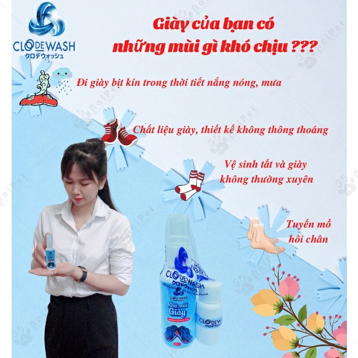 Giới thiệu Chai Xịt Khử Mùi Giày Công Nghệ Nhật Bản CLODEWASH 50ml