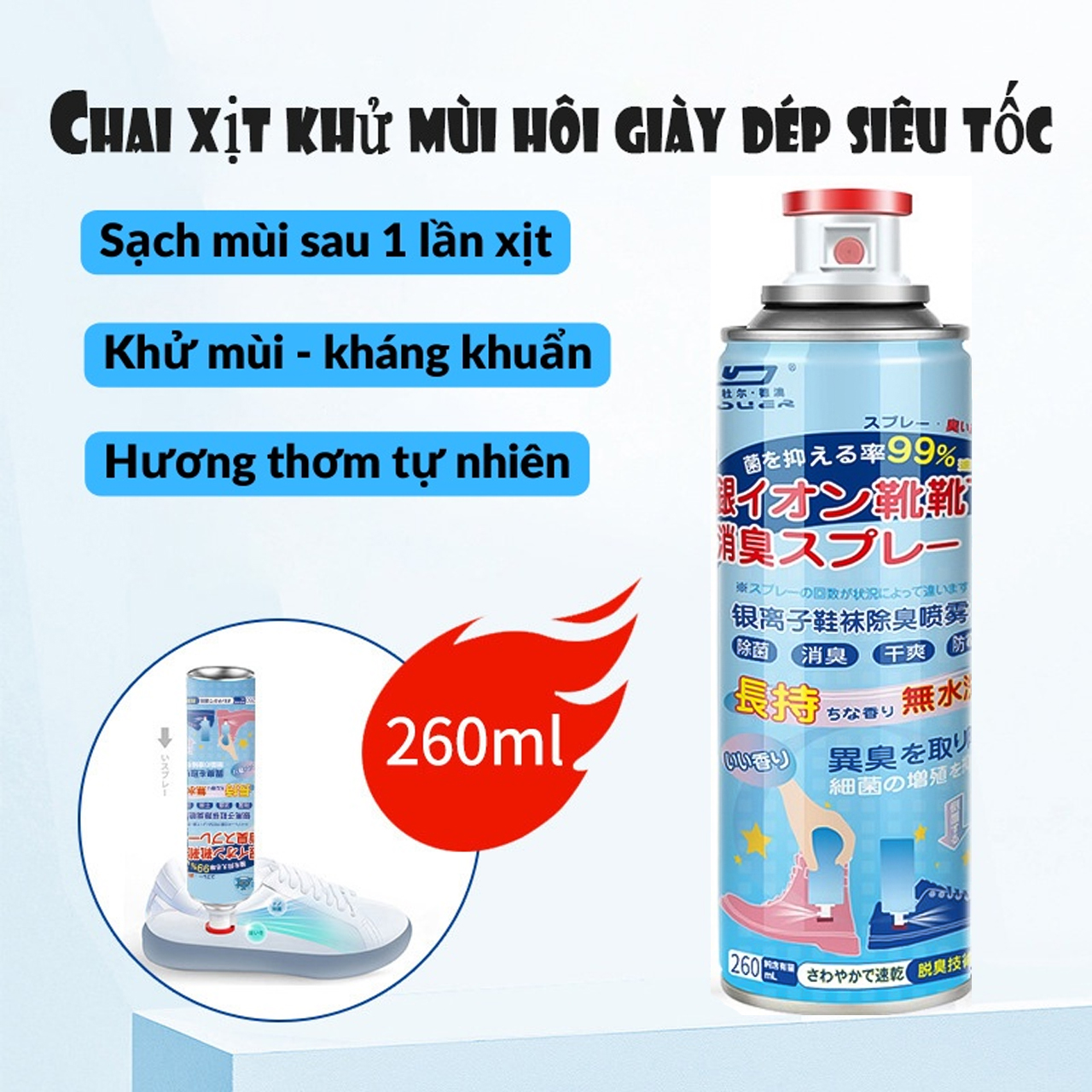 Giới thiệu Chai xịt khử mùi giày dép công nghệ nano bạc, khử mùi hôi chân, giày hiệu quả, loại bỏ 99% vi khuẩn gây mùi hôi giày dép - hàng chính hãng