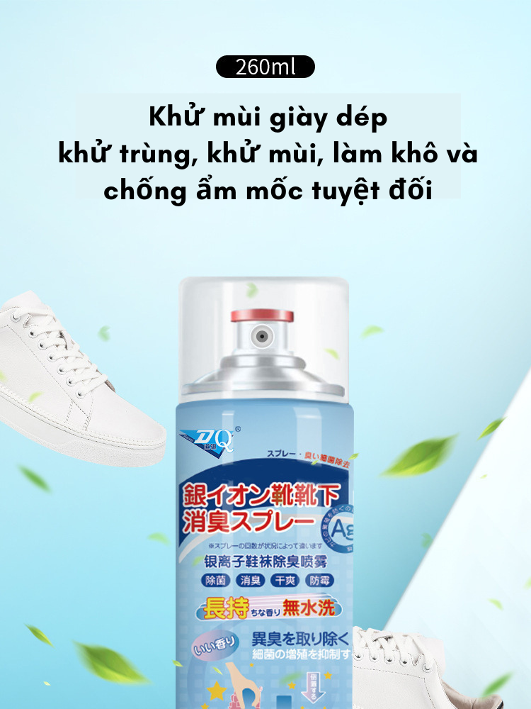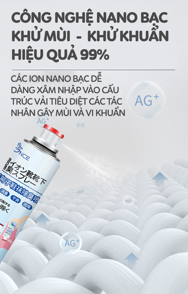 Xịt Khử Mùi Hôi Giày Dép Tất Vớ Tủ Giày Nano Bạc Công Nghệ Nhật Bản Khử Mùi Hôi Chân Hiệu Quả