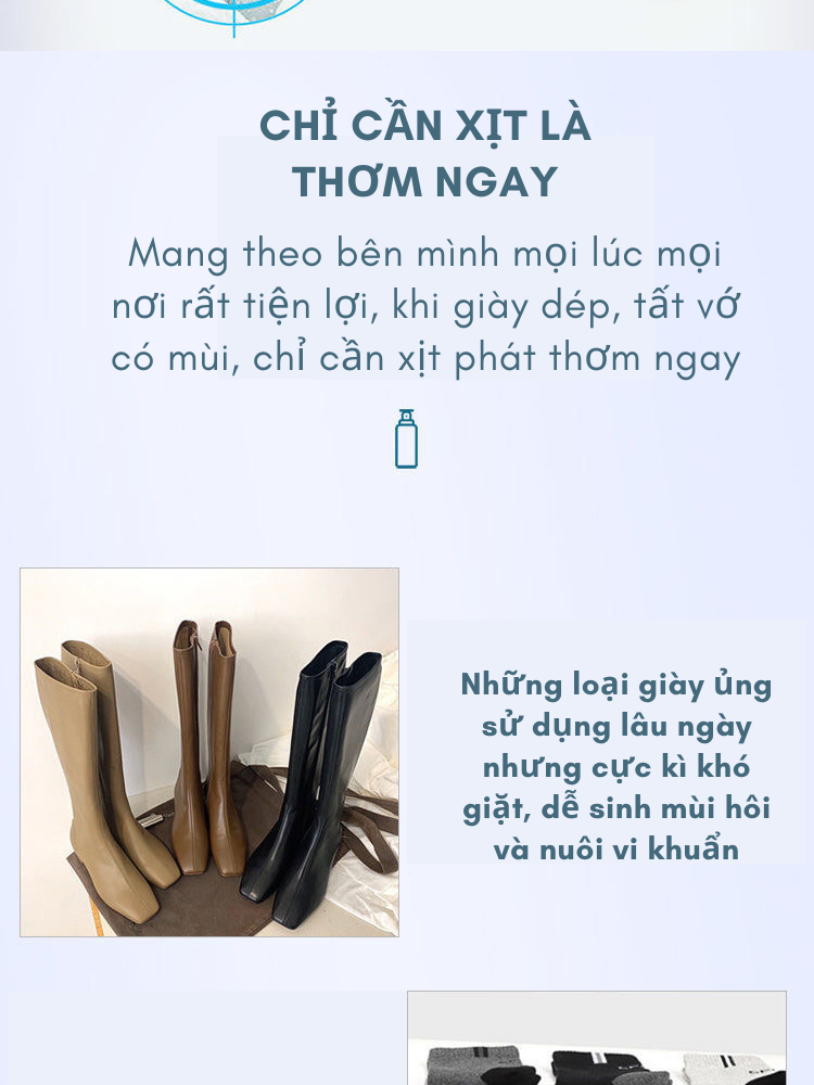 Xịt Khử Mùi Hôi Giày Dép Tất Vớ Tủ Giày Nano Bạc Công Nghệ Nhật Bản đánh bay nỗi lo lắng phiền muộn về mùi hôi chân của bạn trong 1 nốt nhạc, giúp bạn luôn tự tin và vui vẻ.