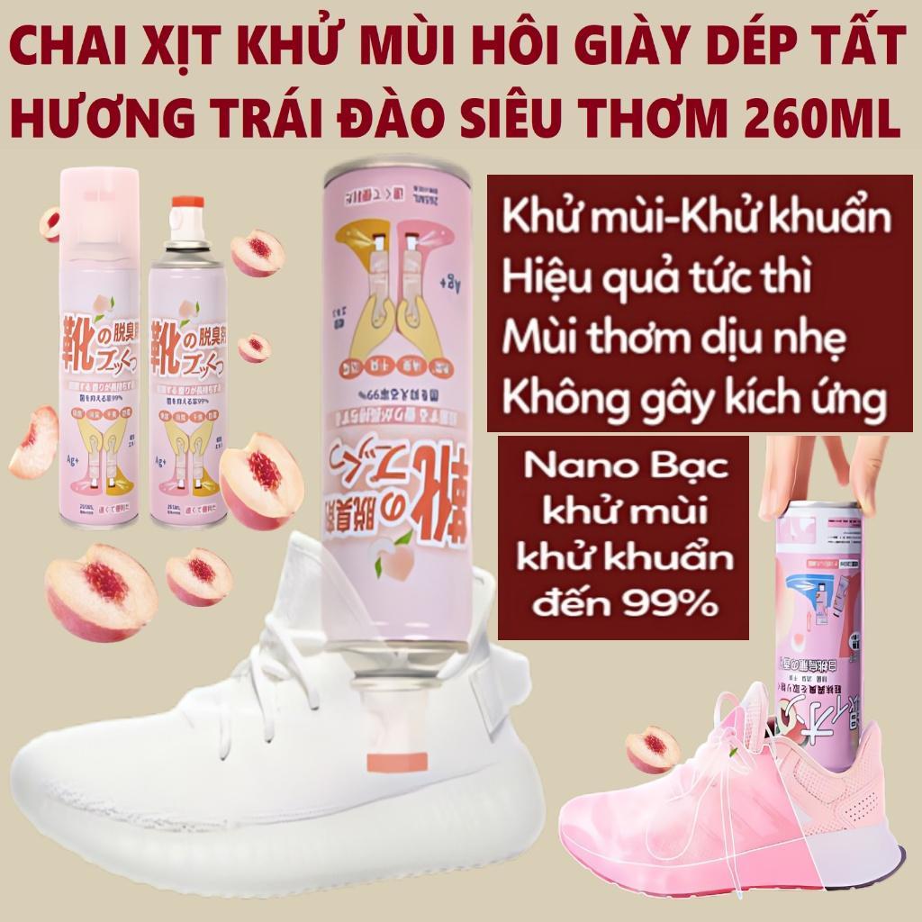 Giới thiệu Chai Xịt Khử Mùi Giày Dép Tất Hương Đào Siêu Thơm 260ml Công Nghệ Nano Bạc - Hương Thơm Đào Tuyệt Vời, Màu Hồng Tinh Tế
