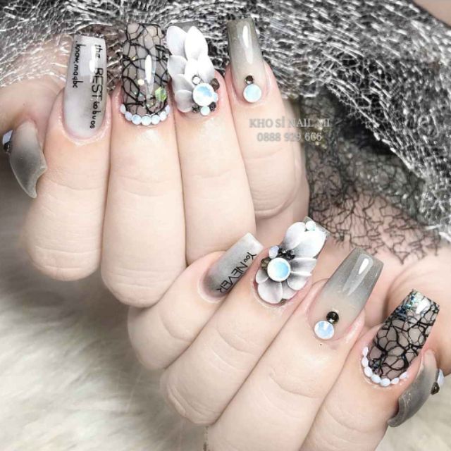 Hướng dẫn cách làm: + Bước 1: Sau khi vệ sinh móng xong, cắt và dũa form móng thật. Mài nhám mặt móng thật để tăng độ bám, liên kết cho móng. + Bước 2: Chải gel liên kết (base) đều lên bề mặt móng tiếp đó đưa tay vào máy hơ UV/LED với thời gian thích hợp khoảng từ 30-60s (tùy vào loại máy hơ các bạn sử dụng) + Bước 3: Sơn màu nền bạn mong muốn và hơ khô. + Bước 4: Trải một lượng gel đính đá vừa đủ lên bề mặt móng tay phần bạn muốn đính, đặt đá và phụ kiện trang trí lên phần đã trải gel rồi ấn chặt xuống. Tiếp đó bạn hơ khô bằng máy hơ gel. + Bước 5: Dùng keo Mxbon trải bồi vào chân đá pha lê để tăng độ chắc cho đá mới đính. + Bước 6: Cuối cùng ta lấy một lượng top coat vừa đủ chải đều lên bề mặt của móng, sau đó đưa tay vào máy hơ UV/LED với thời gian thích hợp khoảng từ 30-60s (tùy vào loại máy hơ các bạn sử dụng).