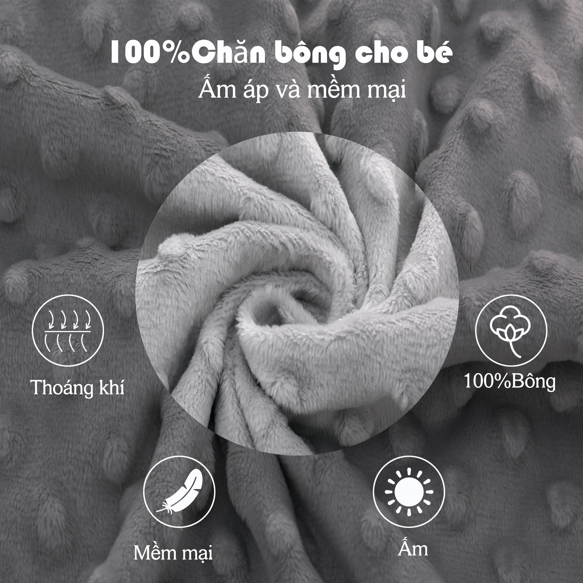 - Chăn được làm từ Cotton 2 lớp dày dặn, ấm áp mag đến cho bé yêu giấc ngủ thoải mái, dễ chịu.