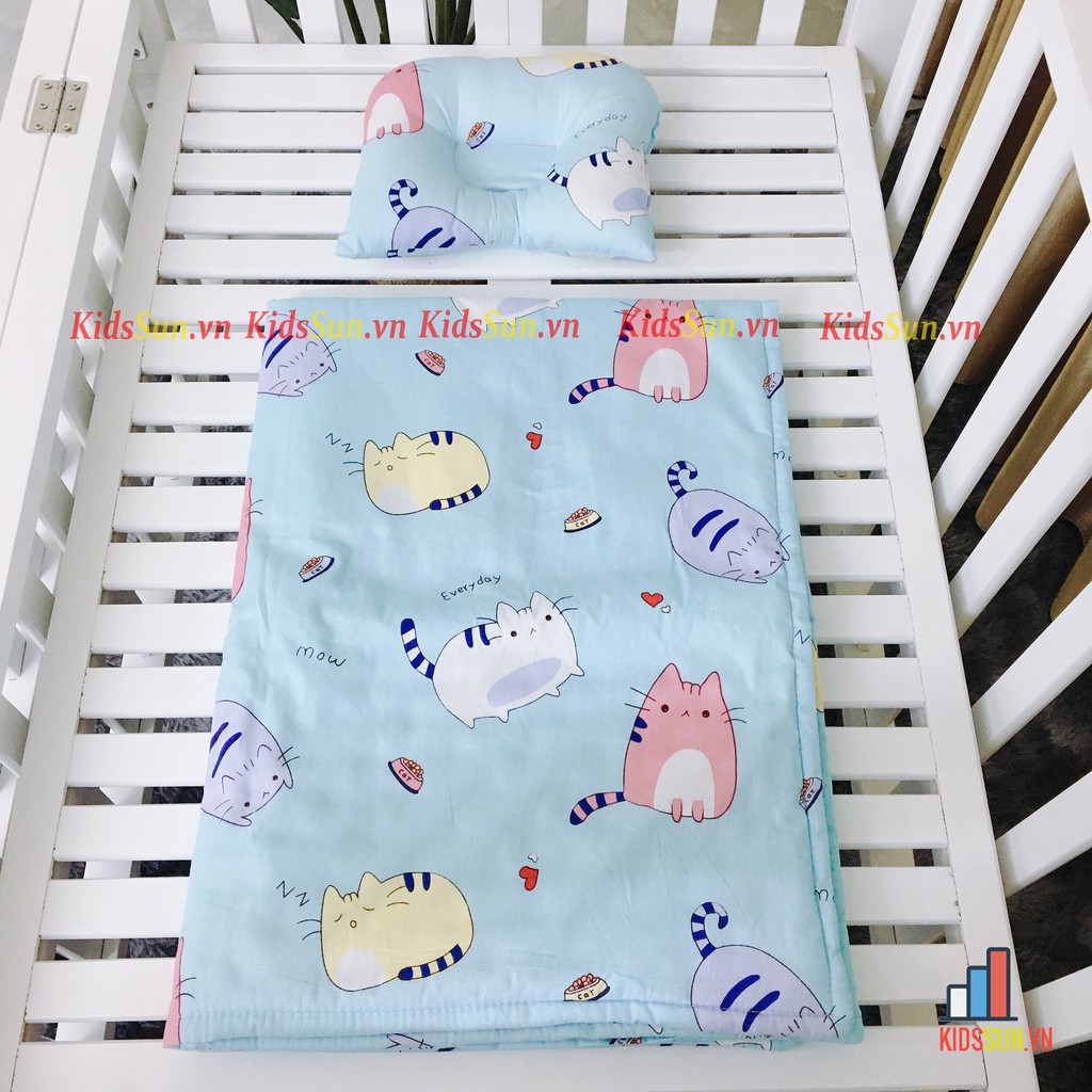 Giới thiệu Chăn Cotton Gối Lõm Gối Chặn KIDSSUN Cho Cũi Trẻ Em Chất Liệu 100% Cotton Nhiều Màu Sắc