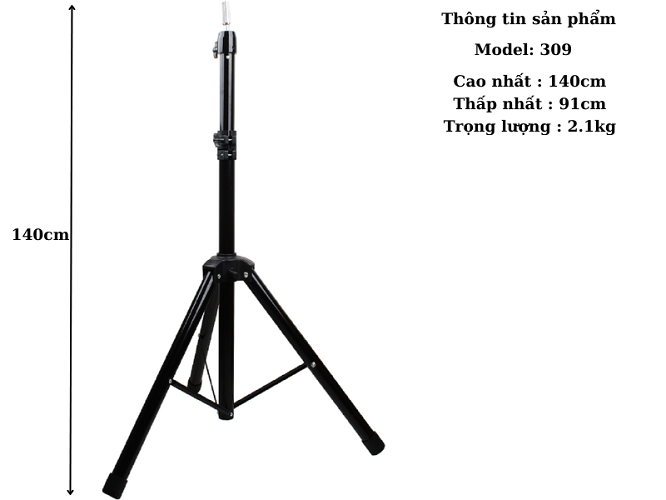 - Độ cao 80cm ( cho gấp gọn để mang đi ) ~ 1m5 ( độ cao tối đa )