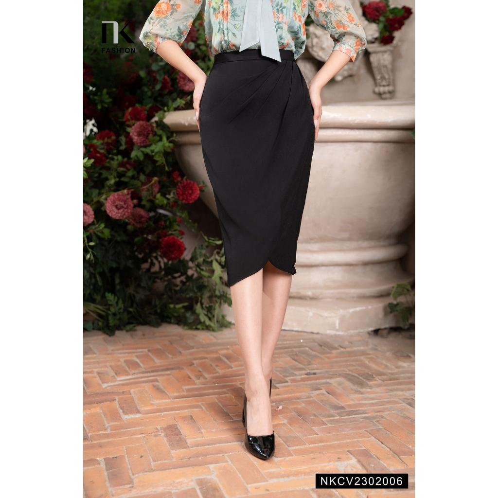+ Thiết kế chân váy xếp tà mềm mại độc đáo, màu sắc nhã nhặn rất phù hợp với chị em trong môi trường công sở, văn phòng