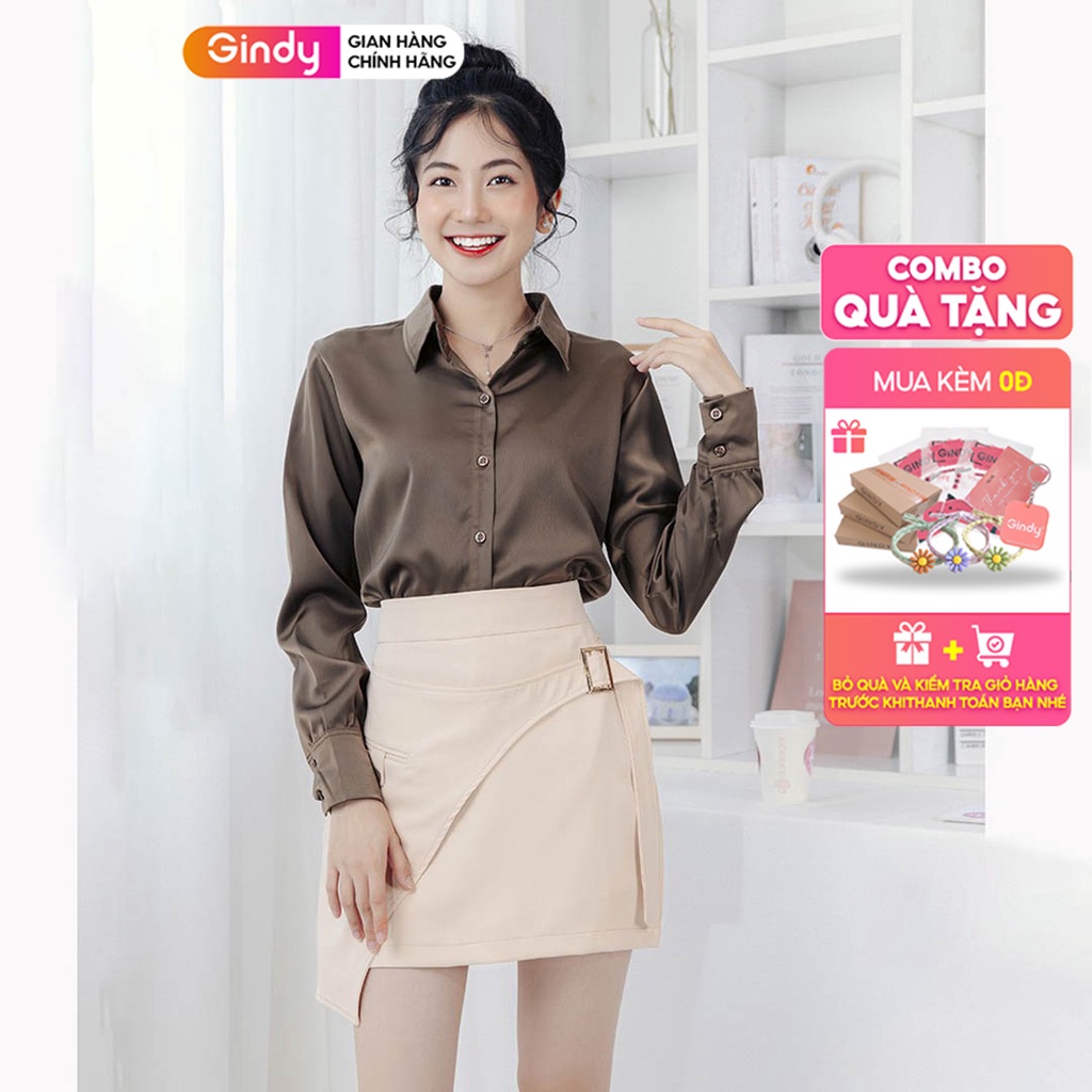 Giới thiệu Chân váy chữ A công sở GINDY hai màu đen kem, cạp cao, phối đai chéo đai trẻ trung thời trang V5130