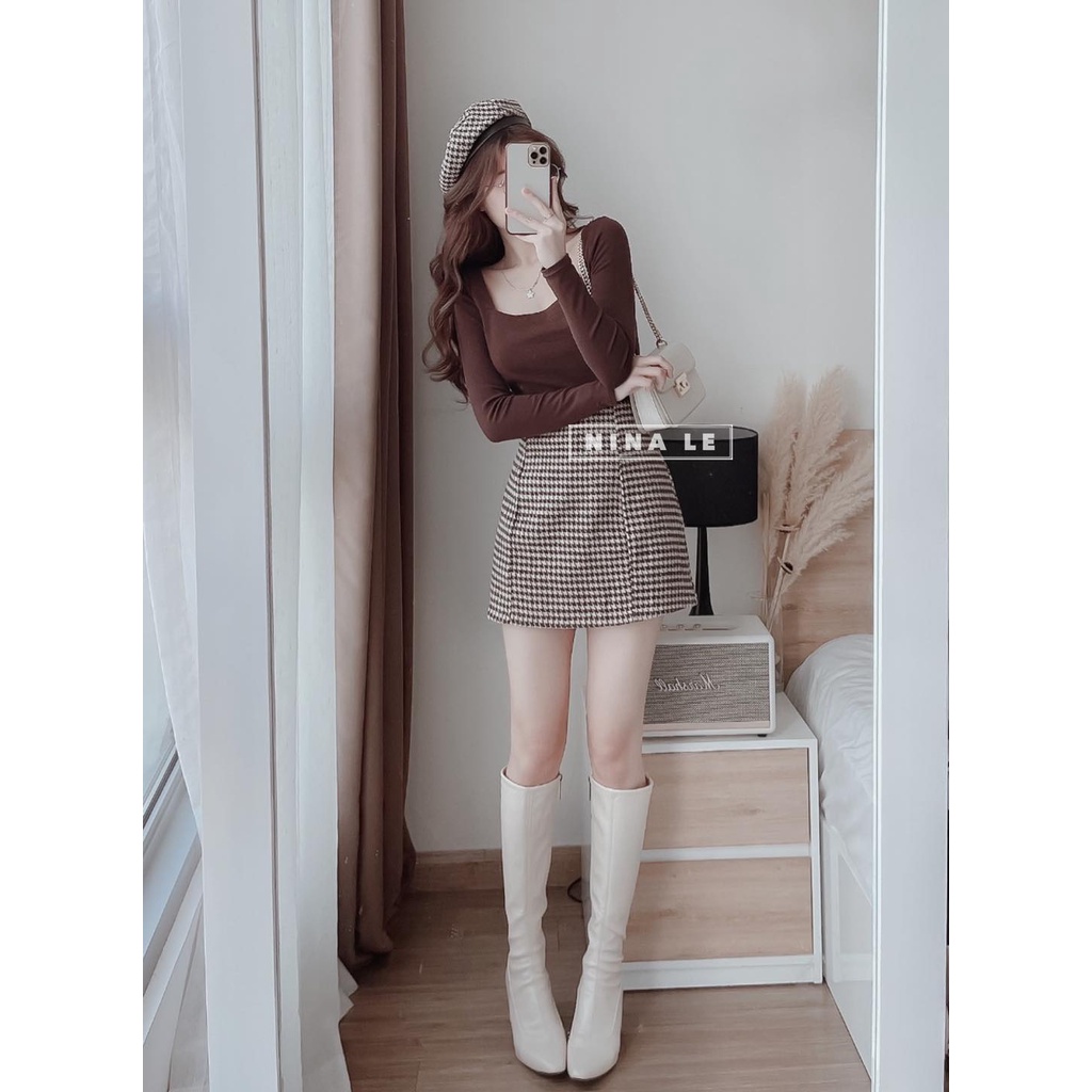 Chân váy được làm bằng chất liệu nhung tăm, có quần lót trong nên chị em mặc sẽ vô cùng thoải mái nha,