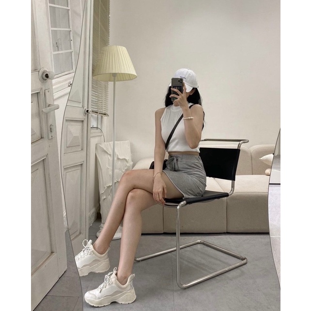 Chân váy chữ a kiểu ngắn váy đi biển màu đen trắng xám chất da cá mát mịn siêu cá tính thể thao mã 8415