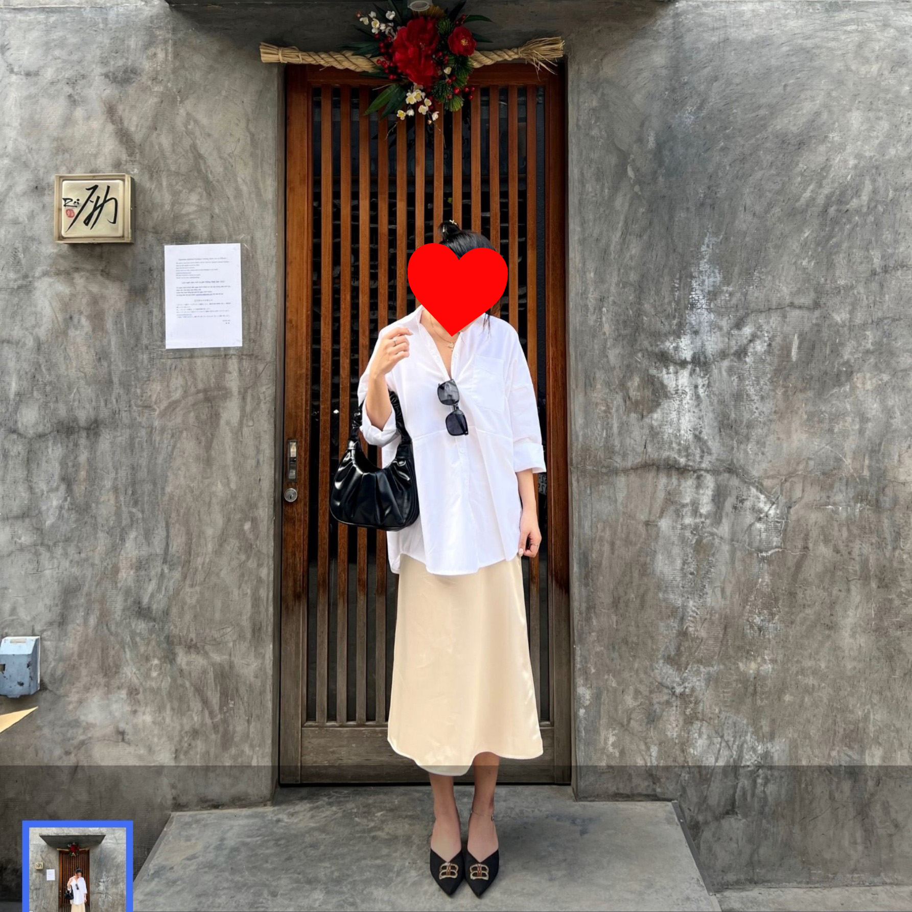 Chân váy chữ a dài qua gối màu be: ( Ảnh chụp do khách review)