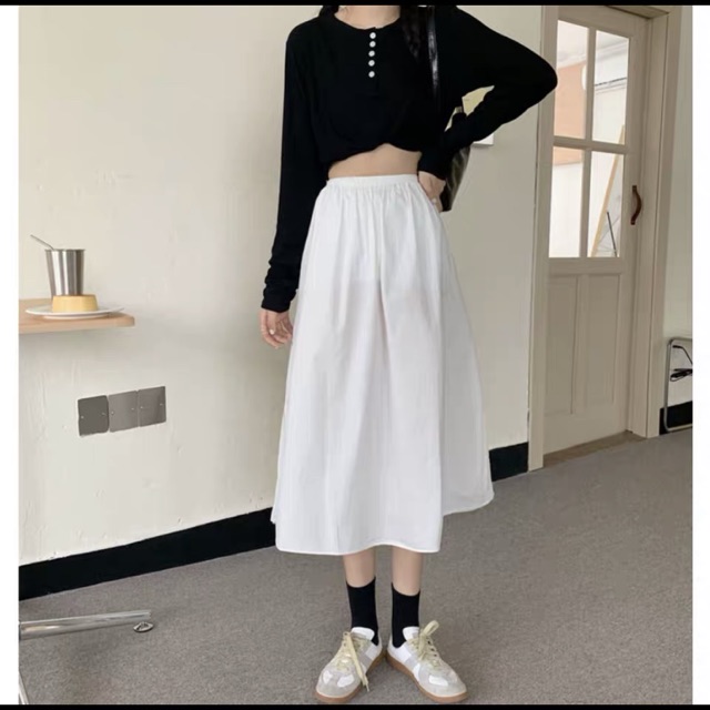 Giới thiệu Chân váy midi thô xoè hai lớp trơn màu basic ulzzang style hàng Quảng Châu
