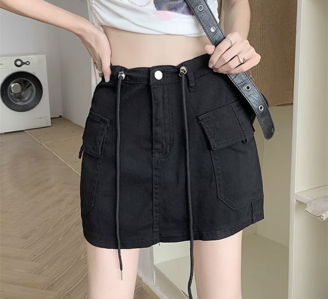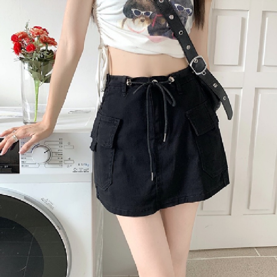 Chân váy ngắn kaki túi hộp kèm dây rút điều chỉnh độ rộng - Quần váy ngắn túi hộp 3 màu cơ bản