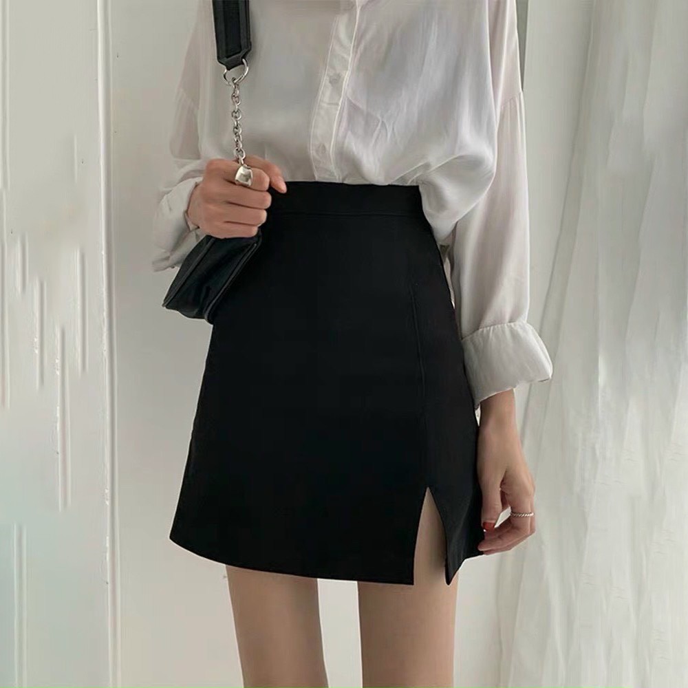Chân Váy ngắn xẻ bên lưng Cao Dài Trên Gối chất tuyết mưa 2 Màu: Đen, Trắng - CV4 - Hanlly Fashion Thời Trang Nữ