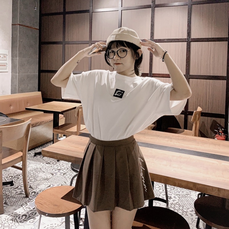 Thời Trang Nữ > Đồ truyền thống > Quần và chân váy || Chân váy ngắn xếp ly Tennis form chữ A xoè thêu chữ phong cách Ulzzang Hàn Quốc 3 màu đen trắng nâu - HOLOGRAM