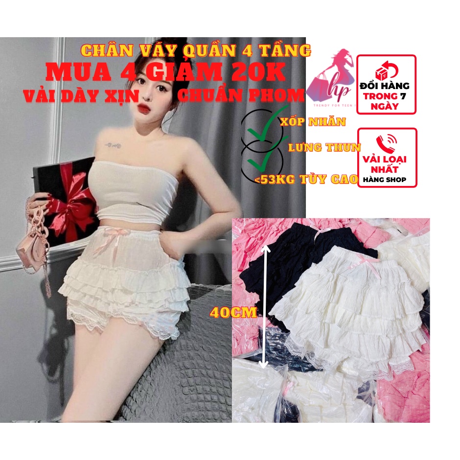 Giới thiệu Chân váy quần nữ 4 tầng dáng ngắn lưng thun phối ren xốp nhăn phong cách hàn quốc-CV101