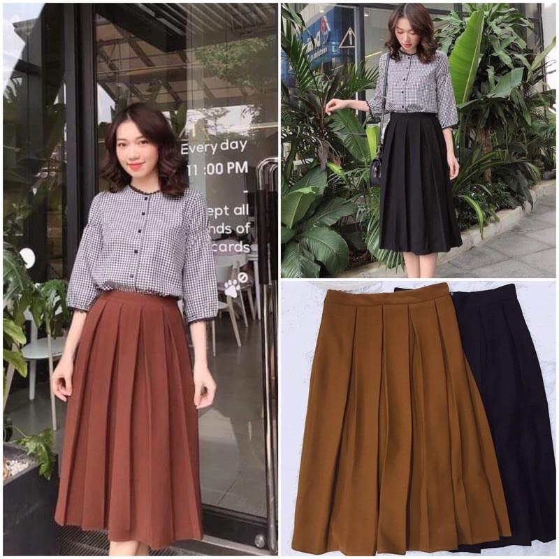 chân váy dài xếp ly chất tuyết mưa dày dặn ko nhăn - ko nhàu về sll BÁN QUANH NĂM