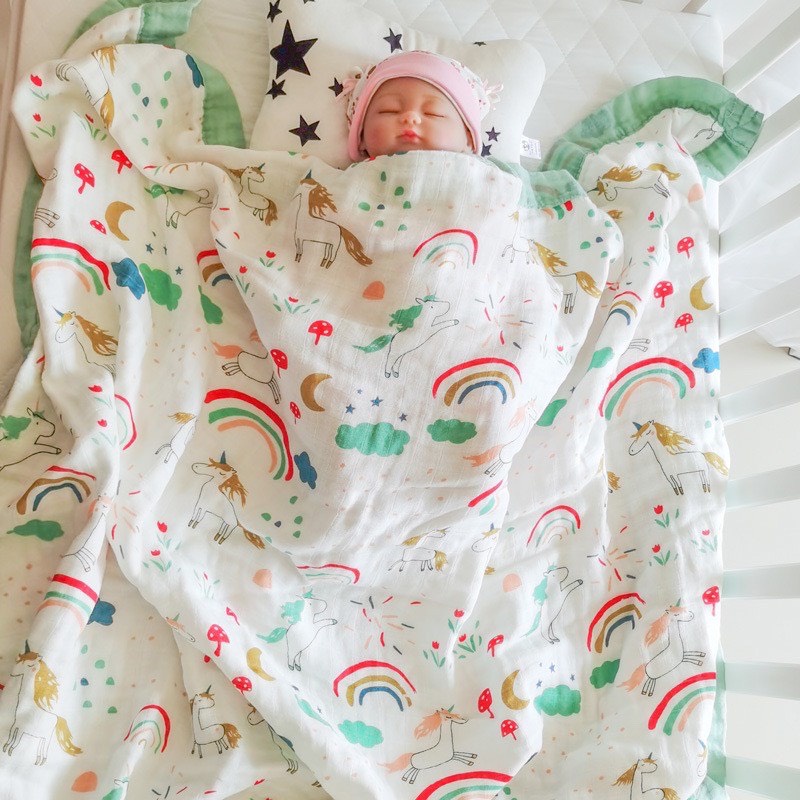 Giới thiệu Chăn xô cotton 6 lớp kích thước1.1mx1.1m bo viền siêu đẹp, đóng túi zip