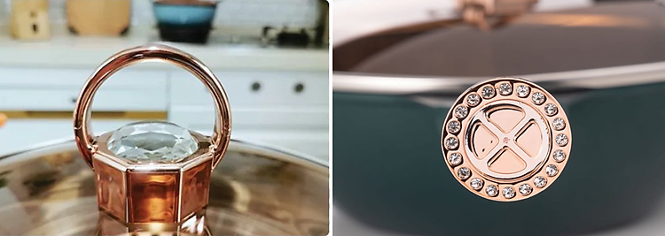 - Quai núm & tay cầm: thiết kế cách điệu sang trọng, cách nhiệt an toàn khi nâng/nhấc.