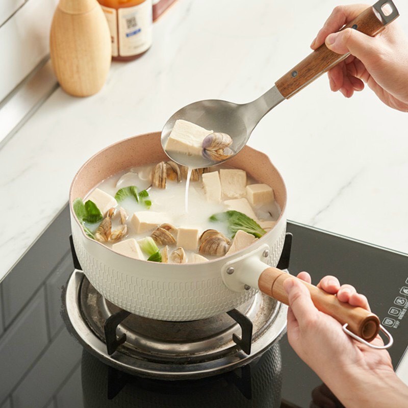 - Lớp chống dính chất lượng cực tốt, màu sắc đẹp - Chảo sử dụng vân đá bao phủ cả bên trong và mặt ngoài chảo, chống trầy xước và bám bẩn cực tốt - Mặt trong chảo ngoài phủ lớp chống dính cao cấp, mặt trên cùng còn phủ một lớp ion bạc bằng công nghệ nano khử trùng đảm bảo an toàn vệ sinh cho gia đình. - Được làm từ nhôm tấm nguyên chất, chảo có khả năng bắt nhiệt nhanh chóng, tỏa nhiệt đều khắp toàn bộ đáy giúp thức ăn chín nhanh, không bị cháy khét và mất chất dinh dưỡng. - Cán chảo sử dụng gỗ cao cấp - Tay Cầm , chống trượt, thiết kế tiện dụng, tạo cảm giác thoải mái khi cầm. - Lớp phủ chống dính, an toàn và tốt cho sức khỏe. - Cán chảo sử dụng nhựa tổng hợp/cán gỗ cao cấp có thể chịu được nhiệt độ 180 độ C, cách nhiệt 100%