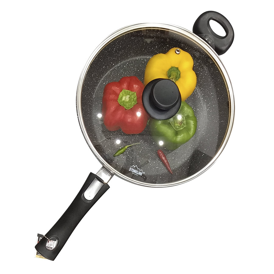 - Lòng chảo thiết kế sâu phù hợp với nhiều loại thực phẩm và có lỗ gắn treo chảo thuận tiện phù hợp cho những gia đình có hông gian bếp chật hẹp.)