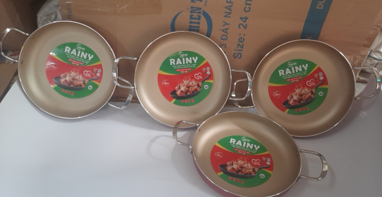 Được sản xuất từ chất liệu nhôm, thép không ghỉ, chống móp méo tốt. Đáy chảo phẳng, tỏa nhiệt đều và giữ nhiệt lâu khi nấu. Chảo nhôm chống dính 2 quai Rainy 22 và 24 cm có tay cầm tiện lợi, cầm nắm dễ dàng.