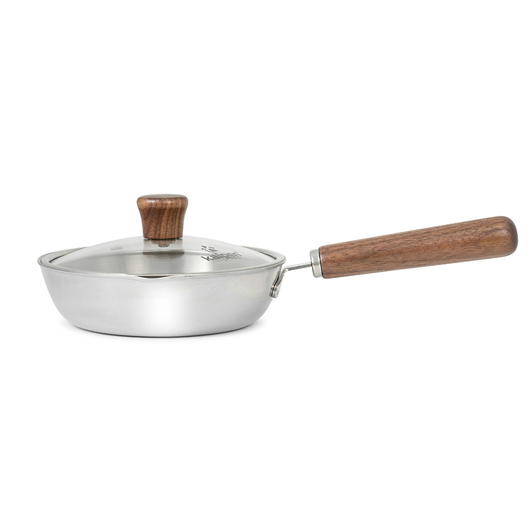 - Tay cầm và núm vung bằng gỗ óc chó được cố định bằng công nghệ hàn đính cách nhiệt tốt, tăng thẩm mỹ