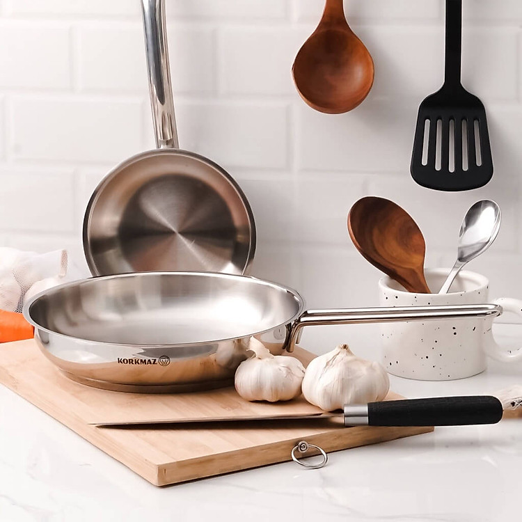 Tay cầm bằng inox nhưng không nóng: Chảo inox Korkmaz Proline sở hữu tay cầm dài được hàn chắc chắn vào thân, được thiết kế rỗng thoát nhiệt nên hoàn toàn không bị nóng khi đun bằng bếp điện, bếp từ Kiểu thiết kế một tay truyền thống cho phép người dùng sử dụng linh hoạt khi nấu ăn trên bếp và tiện dụng khi cầm đổ thức ăn ra đĩa.