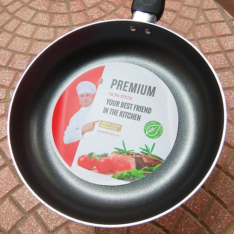 - Đường kính 20cm thiết kế đơn giản, chảo có thể chiên được 3 đùi gà, hay 3 trứng ốp la, cá nguyên con cỡ vừa và nhỏ, dưới 1 kg Chảo Elmich bằng hợp kim nhôm có độ dày gần 2.2 mm, giữ nhiệt tốt, truyền nhiệt đều.