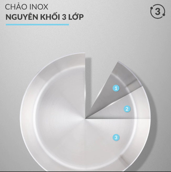 Chảo 3 lớp dẫn nhiệt tốt, mình để lửa nhỏ thôi mà vẫn chín đều, không bị cháy sát đáy.