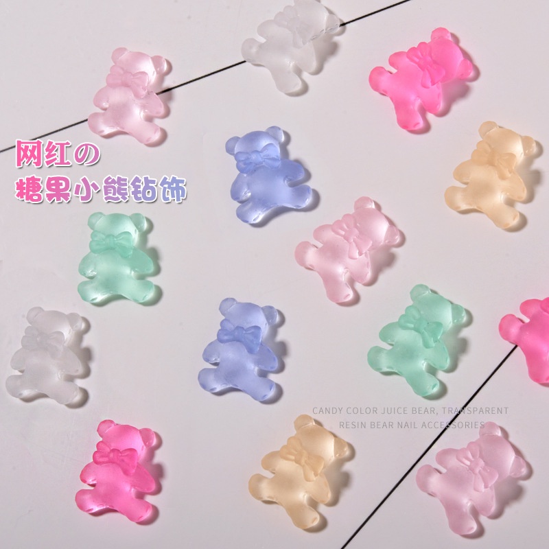 Charm gấu đính móng trong suốt nhiều màu- Charm gấu kẹo