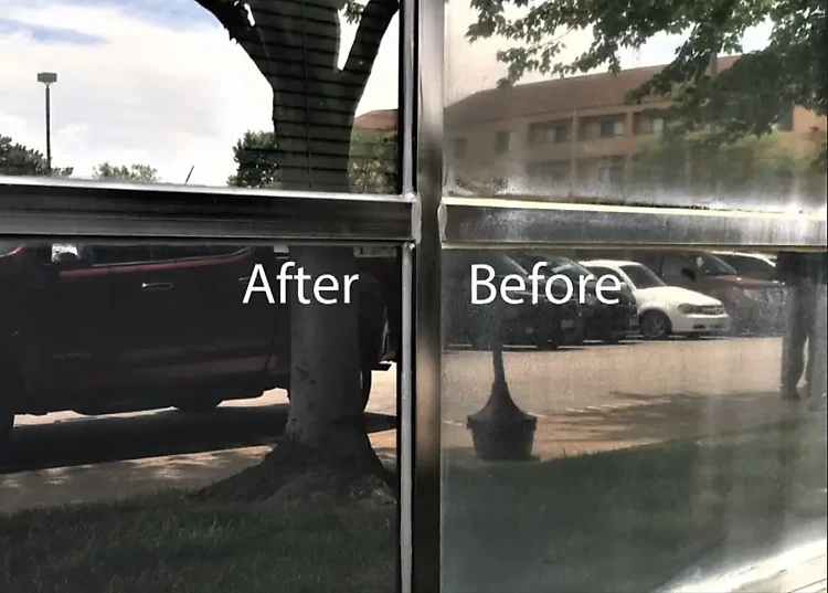 - Sau khi vết ố bẩn, cáu cặn tan hết ta tiến hành vệ sinh lau chùi bề mặt