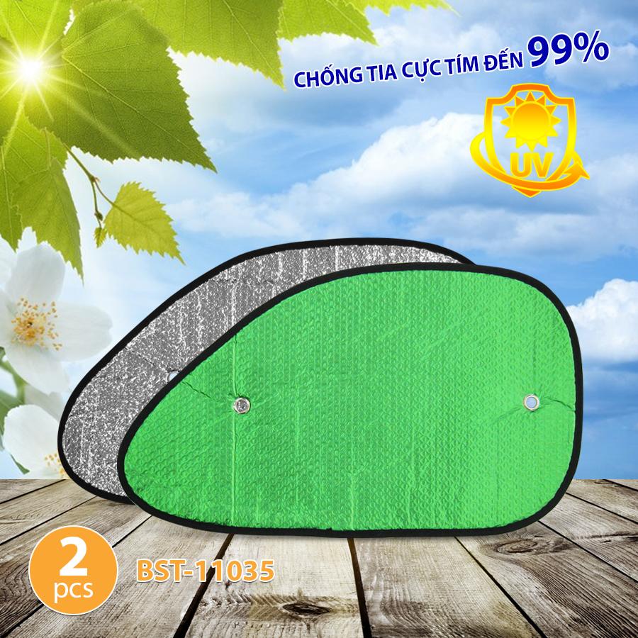 Che nắng ô tô kính hông xốp loại dày NB BST-11035 màu lá (38x65 cm) được chế tạo từ nguyên liệu xốp có phủ một lớp bạc bên ngoài, có khả năng chống lại sự ảnh hưởng xấu từ ánh nắng mặt trời lên chiếc xế yêu của bạn.