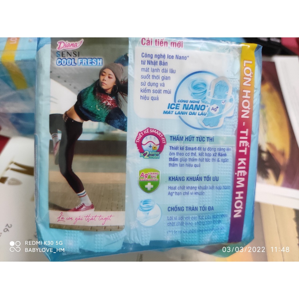 Giới thiệu (CHE TÊN)- BVS Diana Sensi Cool Fresh siêu mỏng cánh, gói 20 miêng