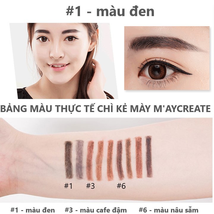 ❤❤❤ Về thông tin Chì kẻ mày , bút kẻ mày 2 đầu Maycreate CHÍNH HÃNG 2 màu mới nhất - Màu đen - Màu nâu Maycreate Eyebrow Pencil là bút kẻ lông mày với thiết kế 2 đầu tiện dụng: * 01 đầu là chì kẻ chân mày * 01 đầu là cọ chải lông mày