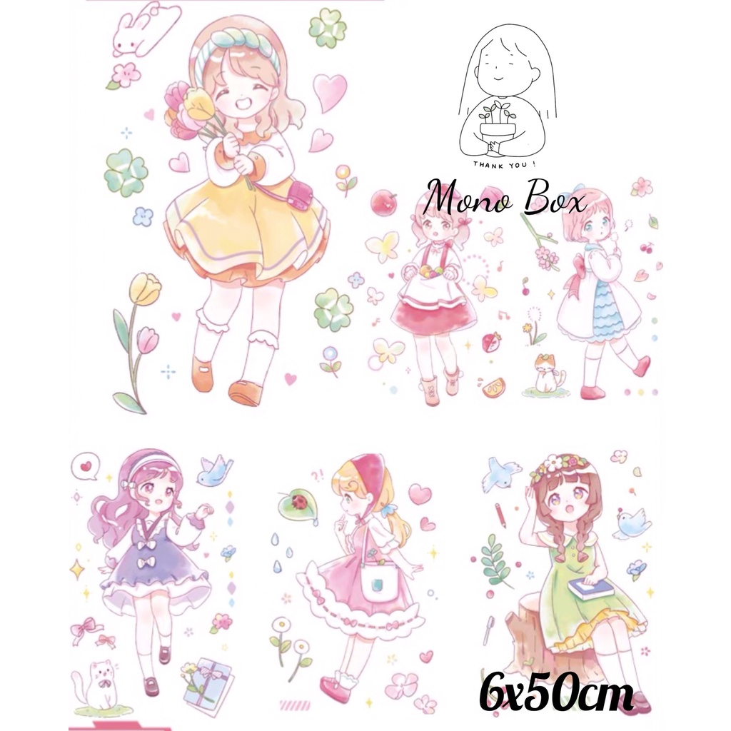 Văn Phòng Phẩm > Thiết Bị Trường Học > Dây & Băng Keo Dán || [Chiết] Washi Tape 6x50cm, băng keo dính trang trí chủ đề nhân vật cô bé đáng yêu làm tranh washi Mono_box