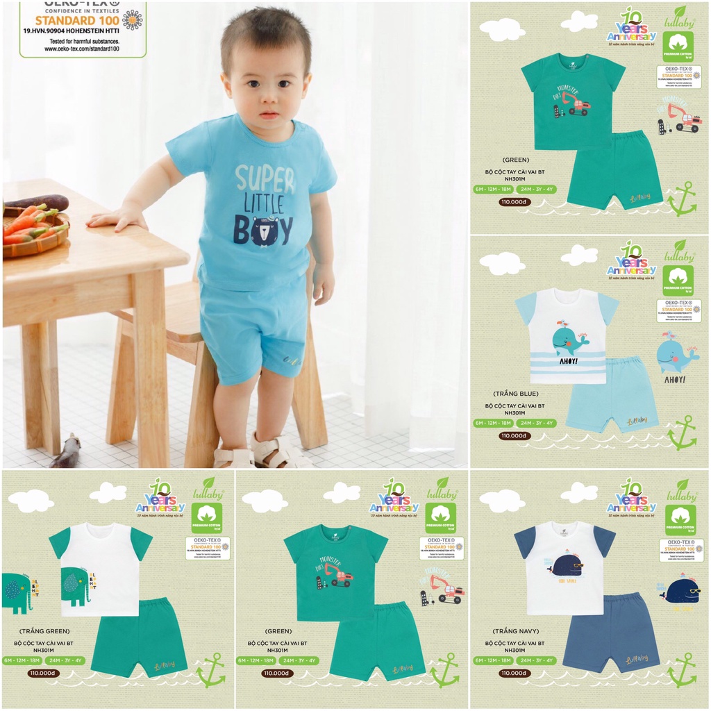 Thời trang trẻ em & trẻ sơ sinh > Quần áo bé trai > Com lê & đồ bộ || [CHÍNH HÃNG]Bộ cộc tay cài vai quần đùi họa tiết bé trai cotton cao cấp Lullaby chính hãng