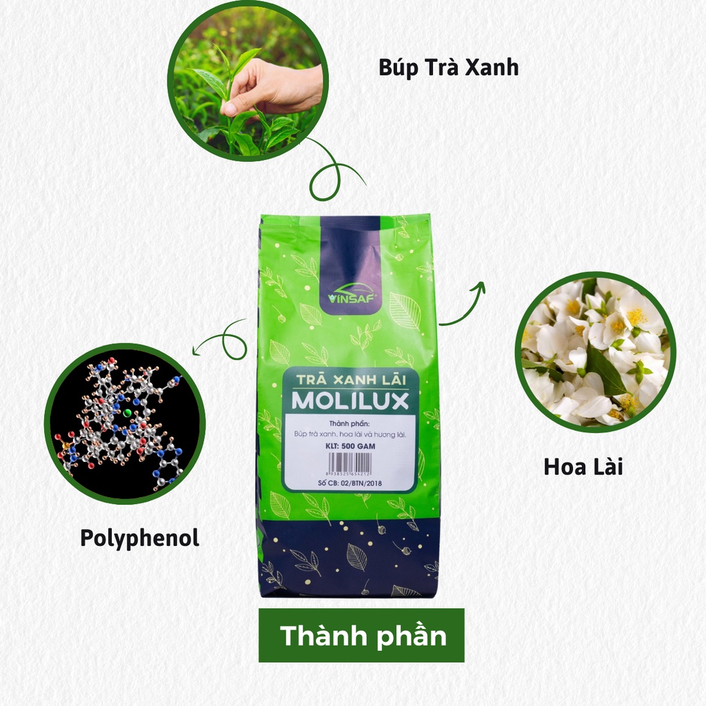 Giới thiệu (CHÍNH HÃNG CAO CẤP) TRÀ XANH HOA NHÀI ĐẶC BIỆT MOLILUX- VINSAF THƠM DỊU HẬU NGỌT- GÓI 500gram