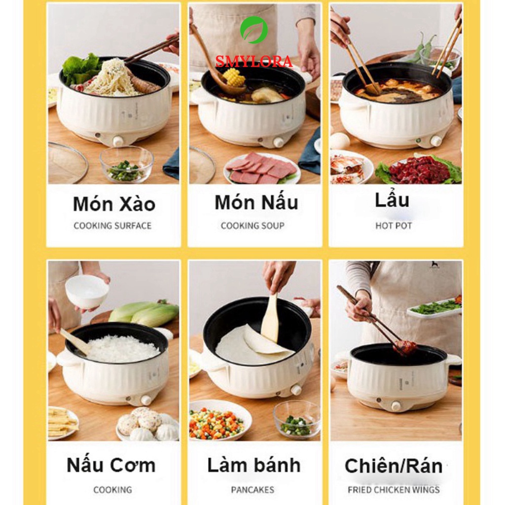 [CHÍNH HÃNG] Nồi Lẩu Cắm Điện Mini Đa Năng (Lẩu , Xào, Nấu, Chiên,Hấp...) Chống Dính Cao Cấp,Bảo Hành Chính Hãng